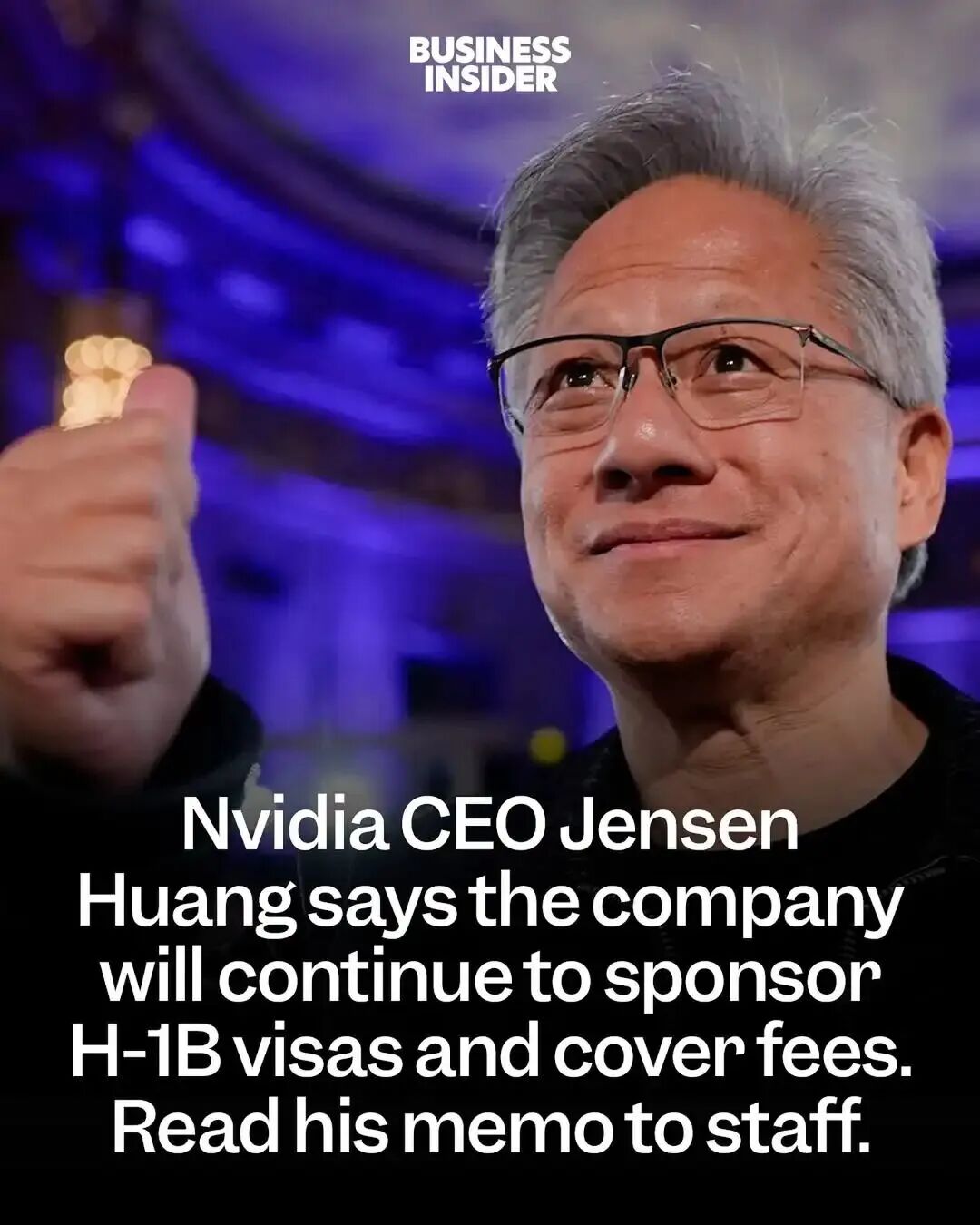 美国AI芯片巨头英伟达(Nvidia)的执行长黄仁勋(Jensen Huang)近日公开表示,公司将继续支持H-1B签证政策,并承担所有相关费用。