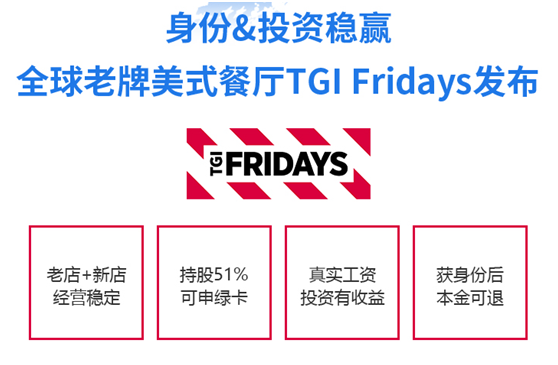 在整个办理移民的过程当中,对于投资人而言,选择EB-1C投资标的是至关重要的考量因素。投资人需要对投资的连锁企业进行包括行业的发展前景、品牌的成熟度、商业模式的合理性以及现金流的稳定性等等方面的考量。为此,侨外EB-1C企业库经过层层甄选,再次引入“大牌”投资标的——全球知名的老牌美式餐厅TGI Fridays,并即将启动投资名额的发布和认购。