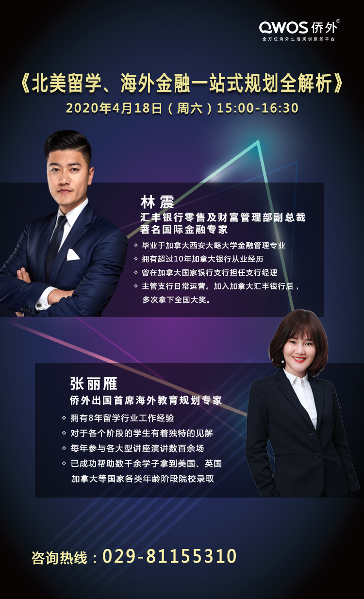 疫情之下最新北美留学趋势是什么?留学和金融规划目前面临的机会和风险是什么?逆流而上如何进行海外投资?本周六侨外出国联合汇丰银行,公共举办“北美留学金融一站式规划活动”。