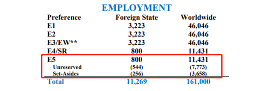 从该报告,我们可以得知2024年财年EB-5 的签证总配额是11431(全球)。其中签证预留区能拿到约3658张,非签证预留区拿到7773张。