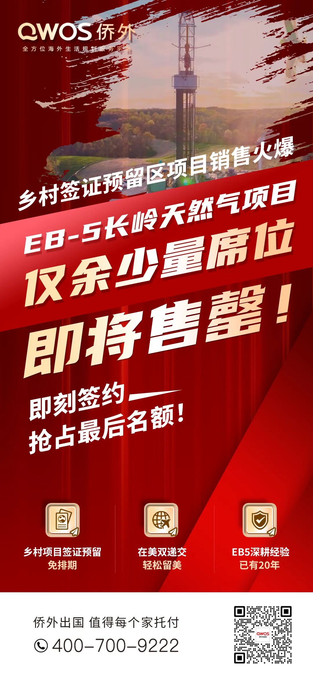 2024财年EB-5新政签证配额抢夺战已正式开启。目前EB-5签证预留区免排期项目认购火爆,侨外EB-5长岭天然气项目仅余少量席位,预计本周售罄!有意向的申请人,还请火速办理,锁定政策红利,抢占新财年签证配额。