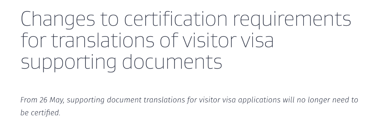 需要注意的是,此项放宽政策仅适用于访客签证申请,居民签证等长期移民类别的文件仍需认证翻译件。