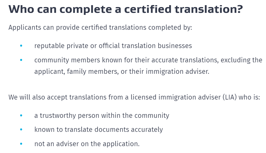 此外,出于公平和准确性的考虑,移民局也依旧强调申请人本人、其家庭成员、移民顾问或其他与申请人存在利益关系的人士,不得为签证申请文件进行翻译。翻译工作必须由具备专业资质的第三方翻译人员或机构完成。