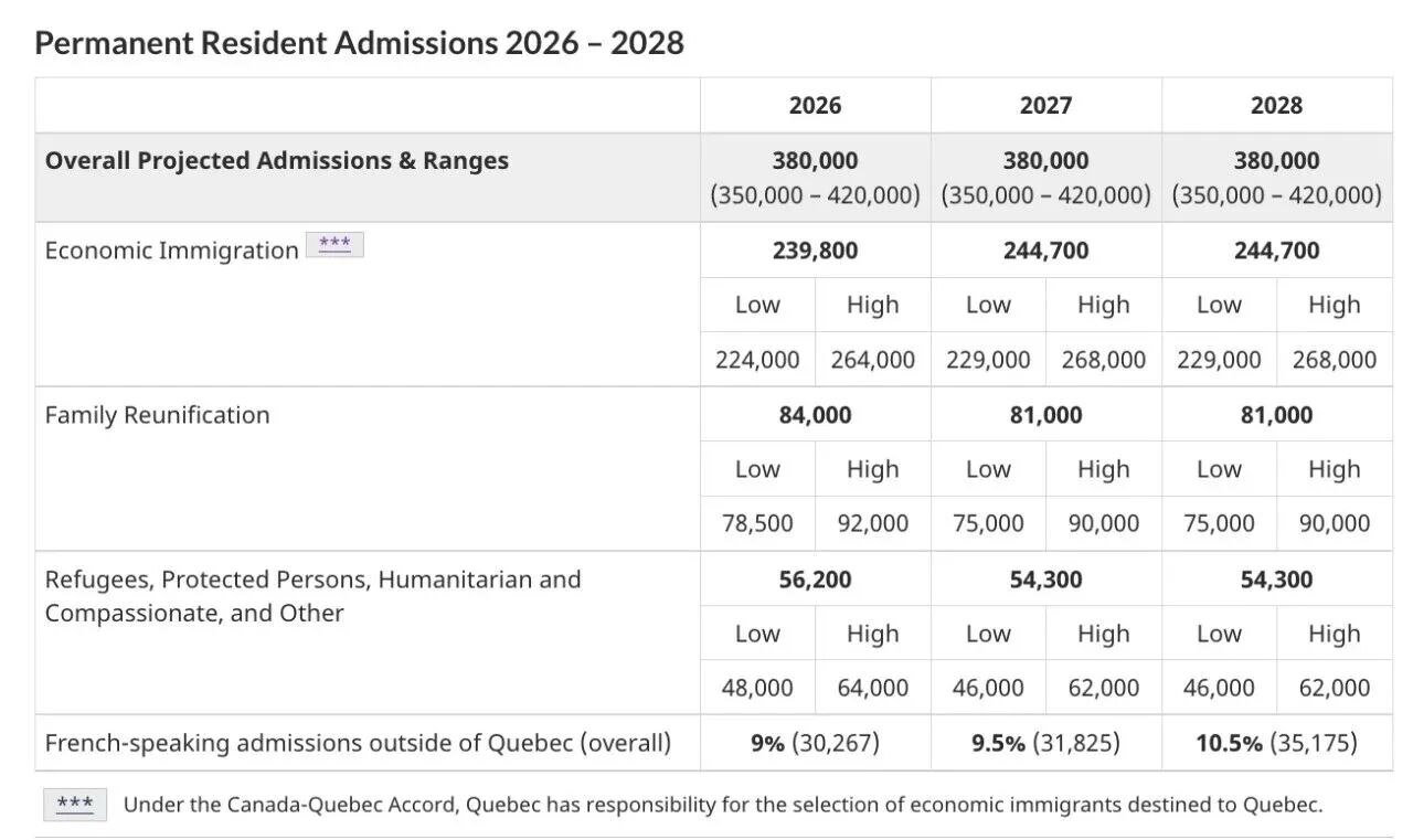 加拿大联邦政府在近日公布的《2025年度预算》中,正式披露了2026-2028移民水平计划(Immigration Levels Plan)的主要方向。
