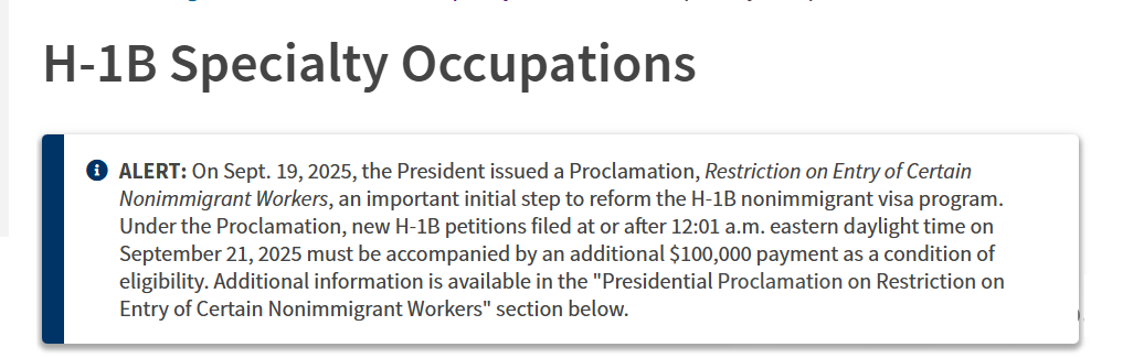 2025年9月19日,特朗普签署行政令,宣布对H-1B政策采取重大变革:自当年9月21日起,所有以H-1B身份入境美国的外籍人士,均须由雇主为其支付每年10万美元的高额附加费。