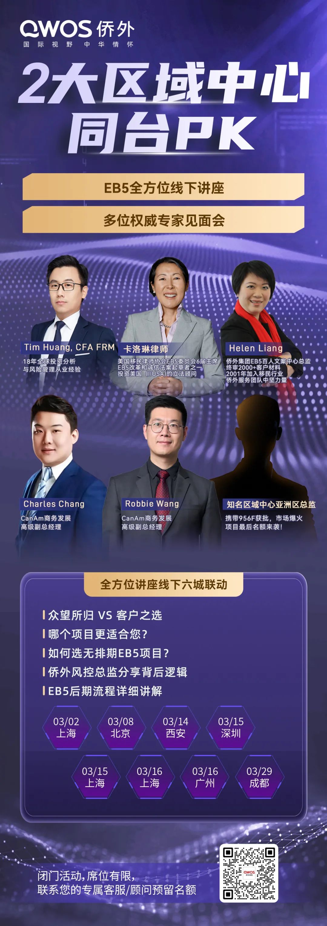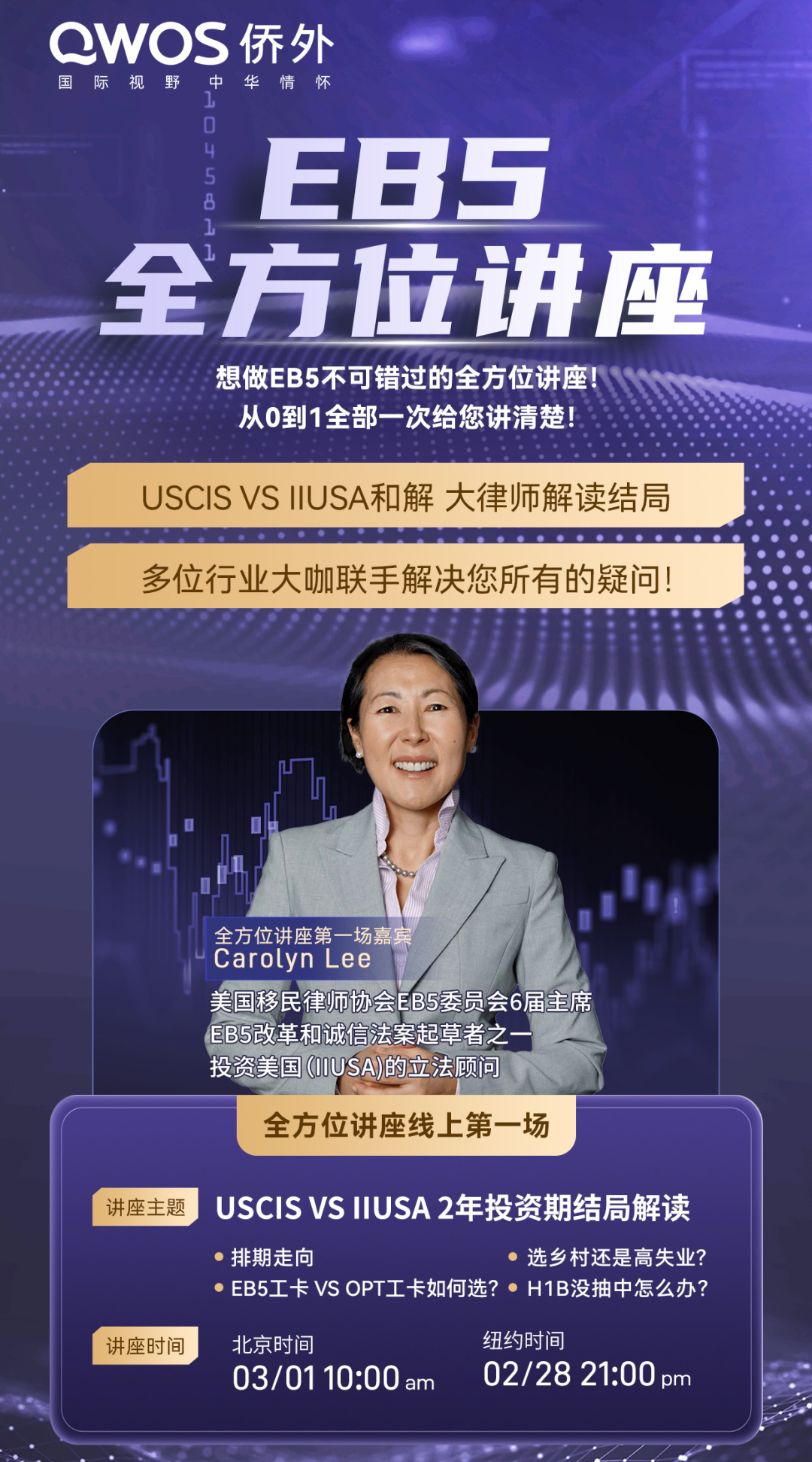 专家也将深度解读IIUSA与USCIS移民局关于EB-5两年投资期的诉讼事件结局。同时,也将针对乡村和高失业排期最新进展进行解读,并特别为有H-1B抽签难题的朋友们提供专业建议与应对策略。