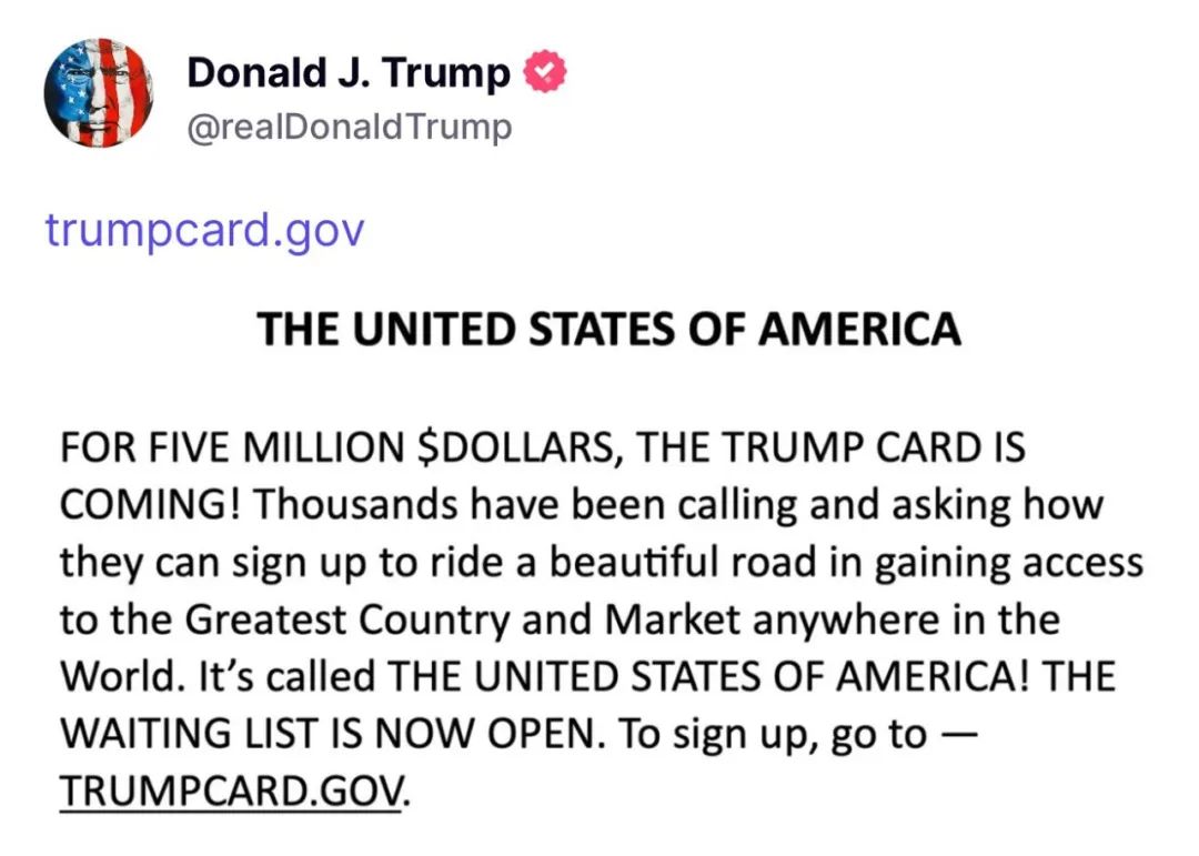 一直信誓旦旦表示会在两周内问世的特朗普“金卡”,如今看来,其登场之日或许真的近在咫尺。