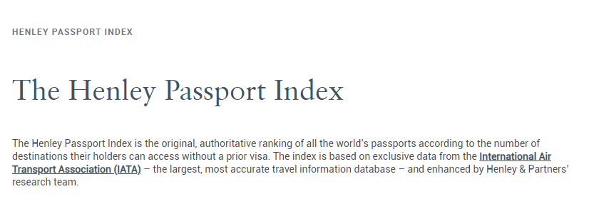 近日,专注投资居留与公民身份领域的国际权威机构Henley & Partners发布了最新《亨利护照指数》。该指数以护照持有人可免签或办理落地签入境的国家和地区数量为基准,精准衡量各国护照的实际通行能力。
