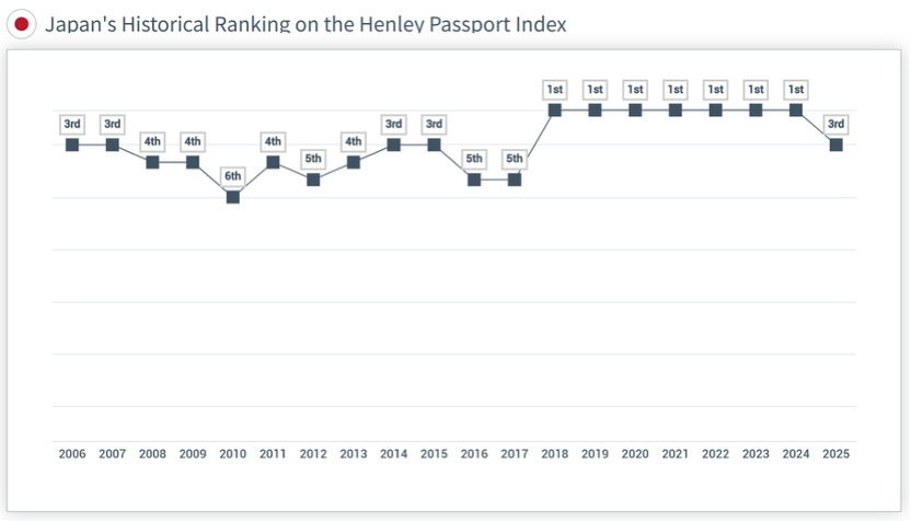韩国与日本紧随其后,分别以190及189个免签地位列二、三名。日本护照能常年位居世界前列,得益于三大支柱:广泛的互免签网络、高效安全的边境管理,以及由国民素养与国家形象共同支撑的国际信任,这无疑是日本软实力的集中体现。