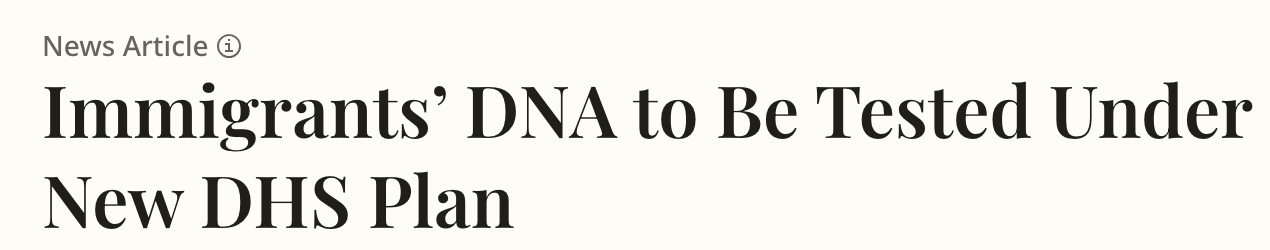 这意味着,DNA数据库有望成为美国移民身份审查体系中的关键组成部分。