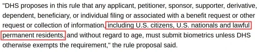 根据提案规定,几乎所有与移民福利申请相关的个人都将被纳入生物识别信息采集范围。