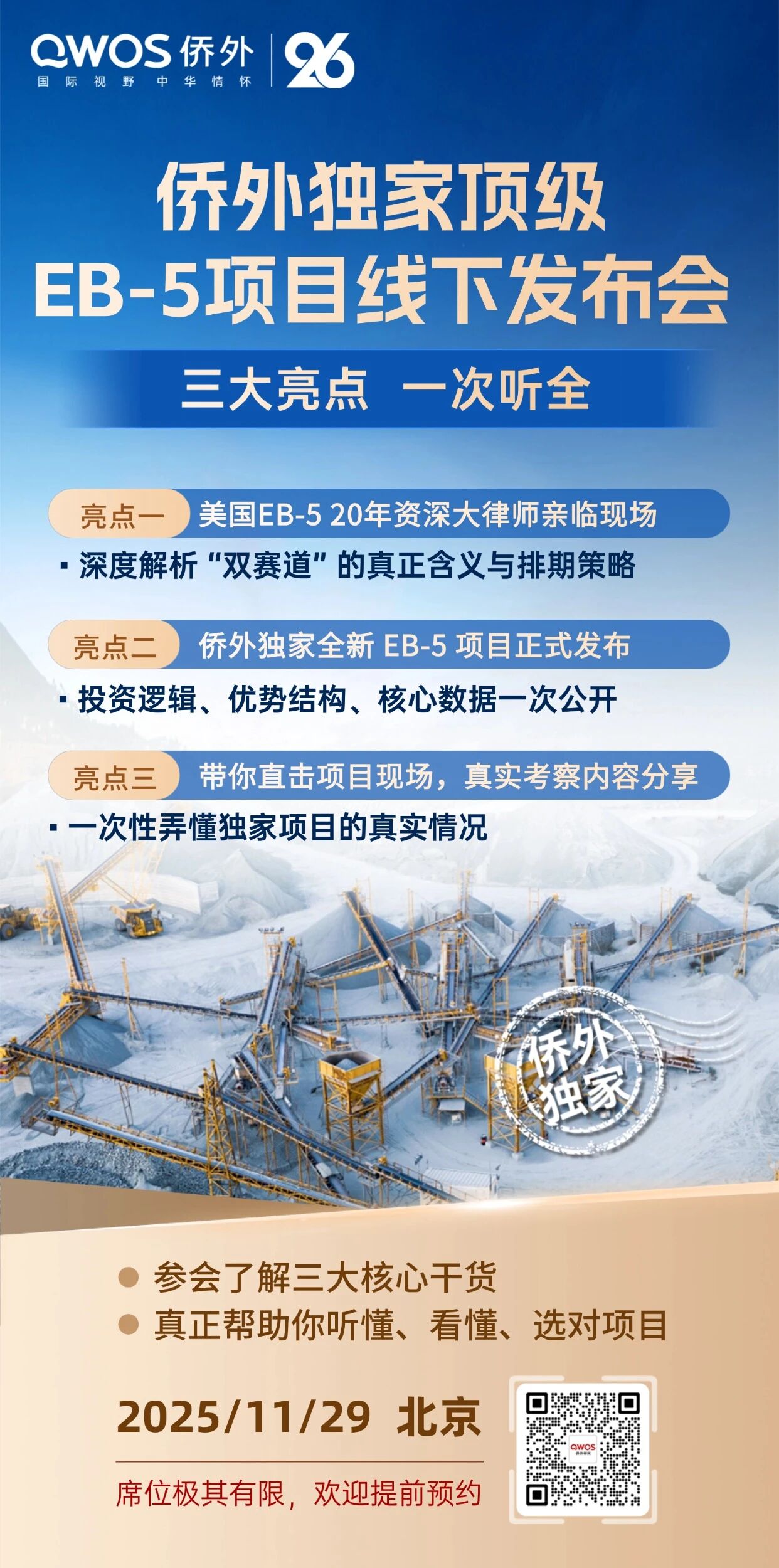 近日,侨外出国推出了一项备受瞩目的EB-5独家项目——该项目经权威认证,同时符合“乡村”与“高失业区”双类别资格,成为当前移民市场上极具战略价值的投资选择。