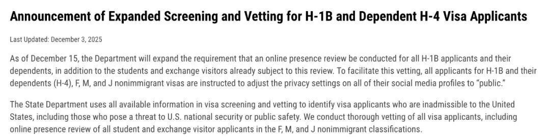 美国加强H-1B审查:12月15日起主申及配偶社媒账号需公开!