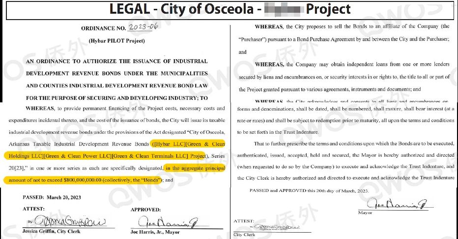 奥西奥拉市政府通过了一项法律文件(编号2023-06号),市议会表决通过、市长及市政官员签字生效,明确规定:为该项目提供最高8亿美金的州工业发展债券。